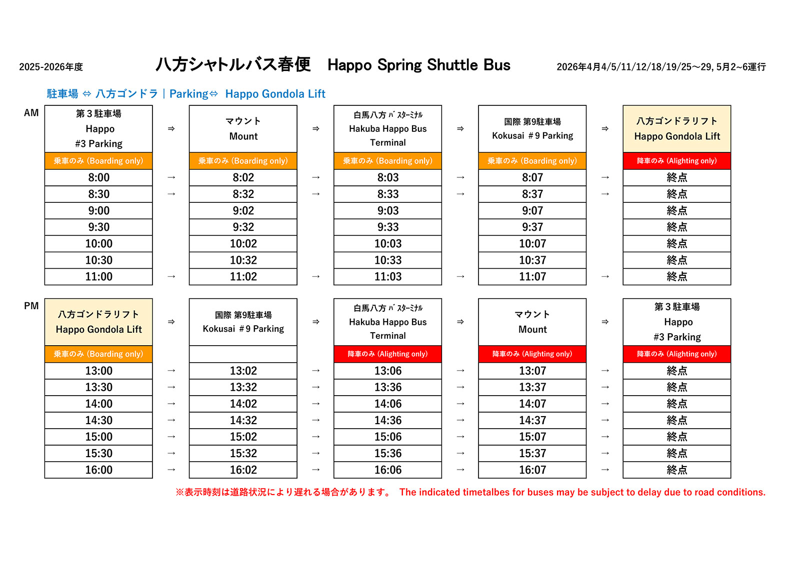 運行日:2026年 4/4, 5, 11, 12, 18, 19, 25〜29, 5/2〜6