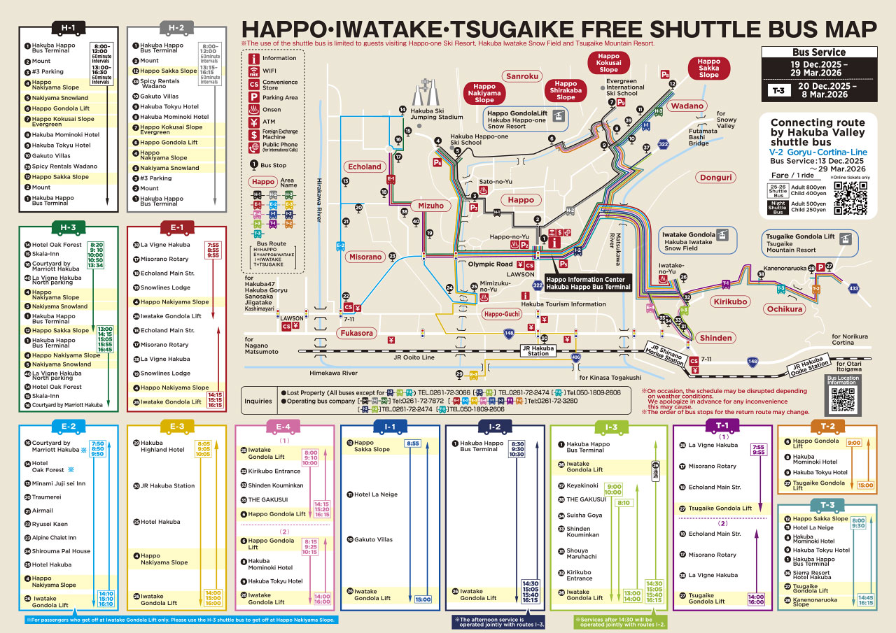 - The use of the shuttle bus is limited to guests visiting Happo-one Ski Resort, Hakuba Iwatake Snow Field and Tsugaike Mountain Resort.
