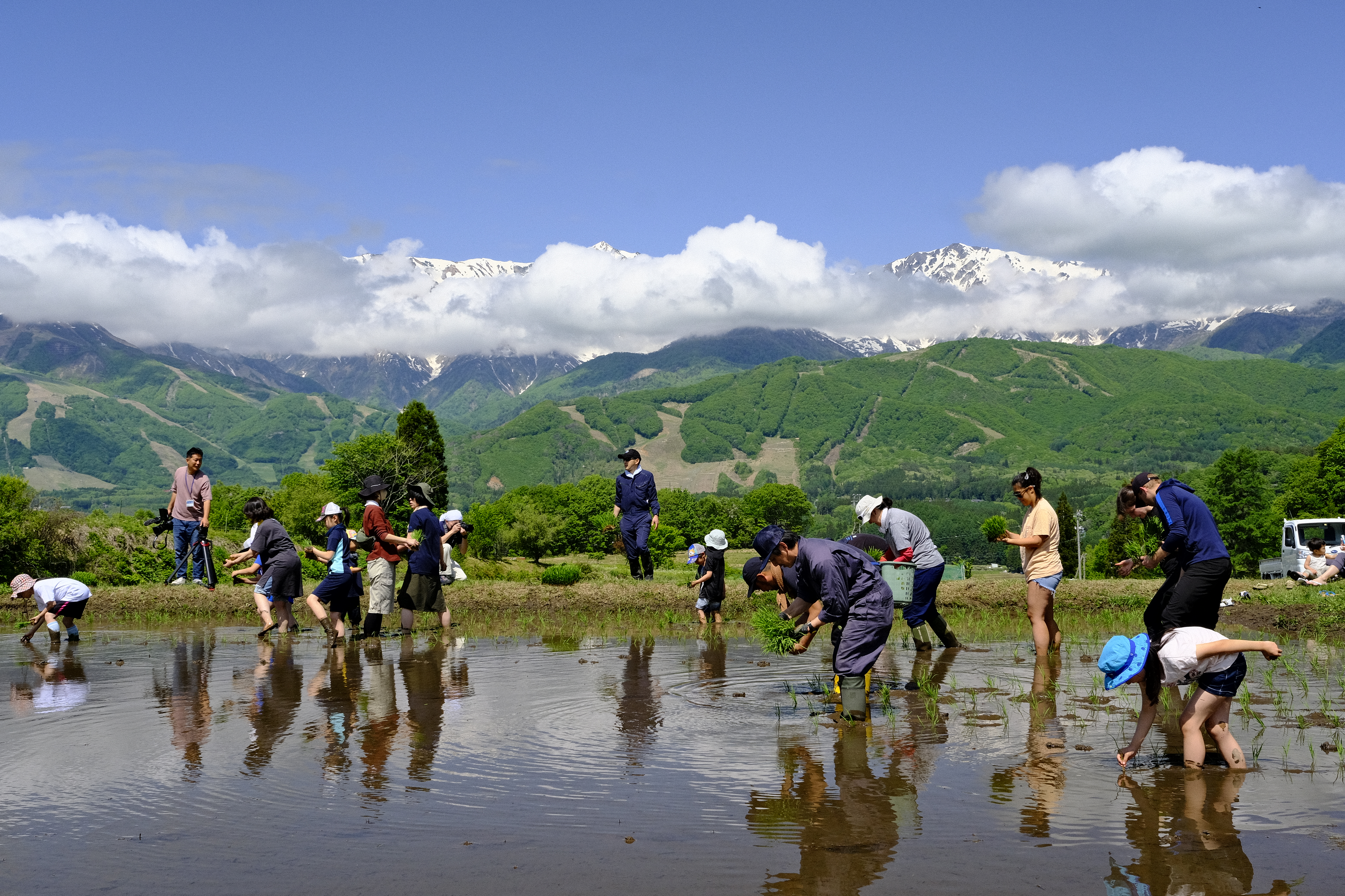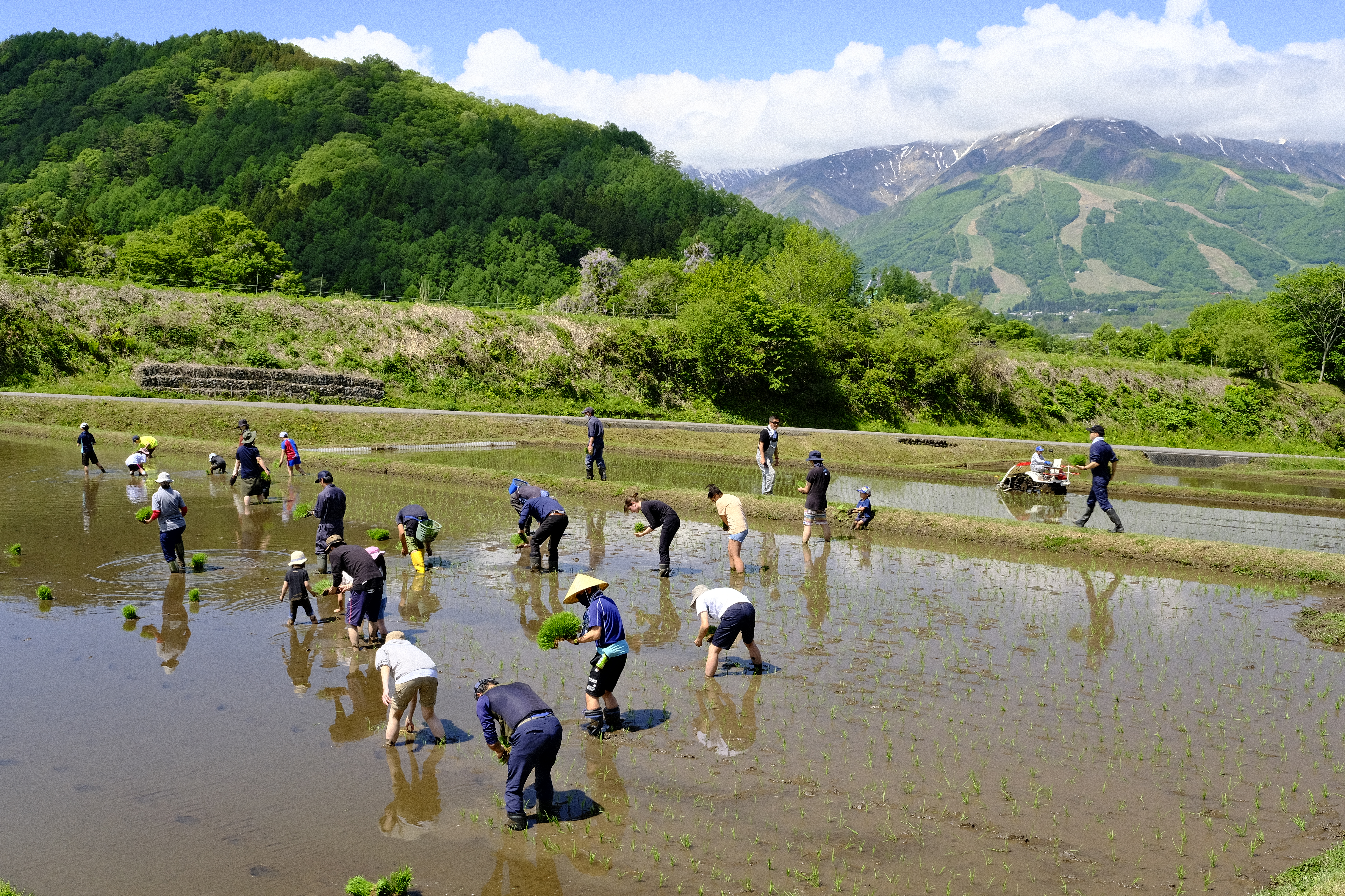 The rice fields are located in the eastern mountains of Hakuba Village, a small farming community by the name of Nodaira. Standing from the high points in Nodaira you can see amazing and spectacular alpine views of Japan’s Northern Alps. After working up a sweat planting rice, a barbecue will be served! We hope you will join us. Children can also participate in this fun experience so please bring the whole family to enjoy a half day in the fields of Nodaira.