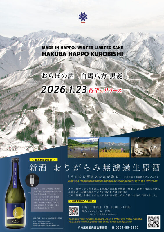 日本酒「白馬八方 黒菱」新酒おりがらみ 1月23日リリース!