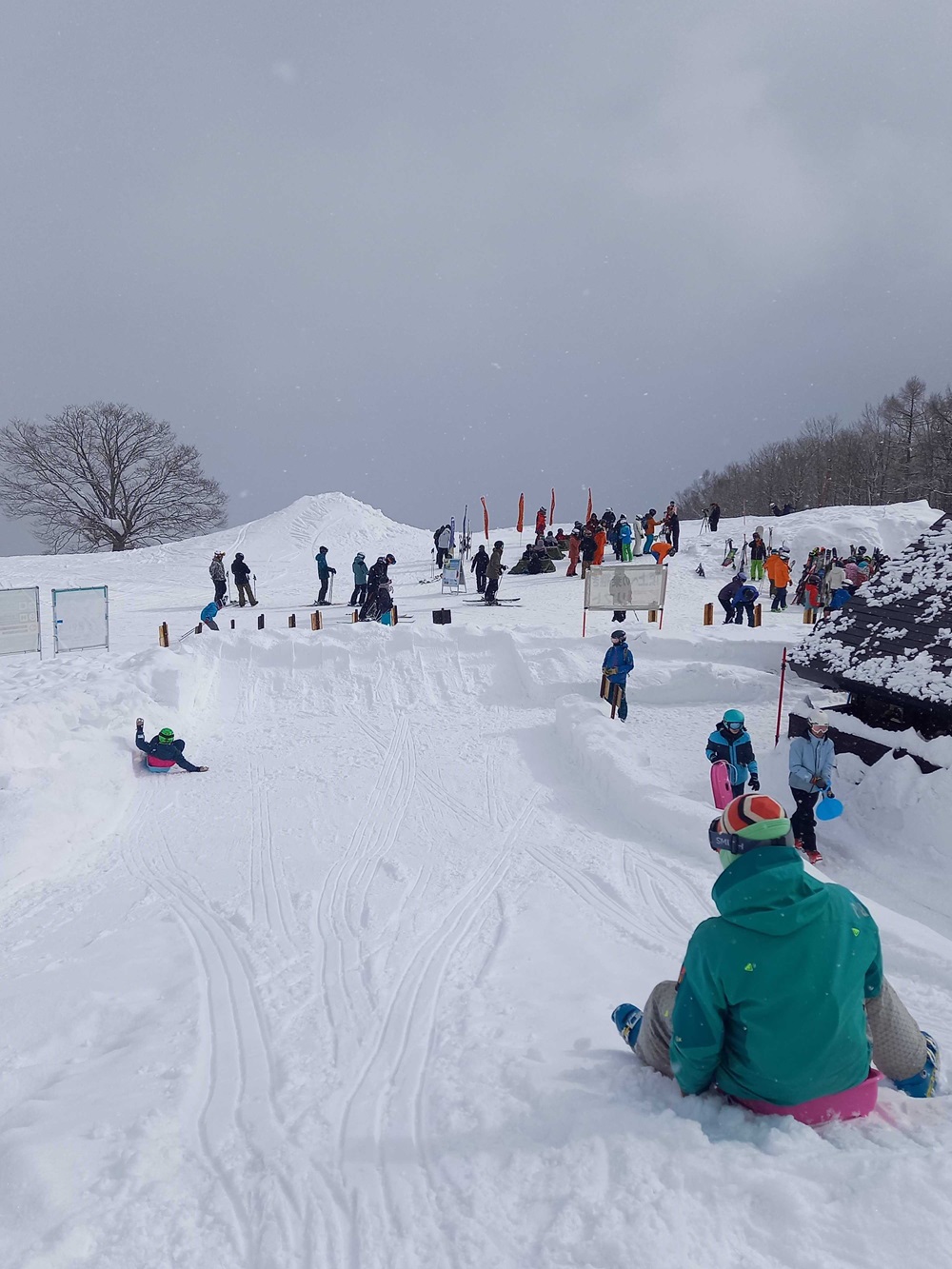 標高1,200mの北尾根高原には雪がたっぷり!北尾根高原テラス横の「北尾根公園」オープン時は、雄大な山々をバックにそり遊びをお楽しみいただける他360度のパノラマビューを満喫できます。