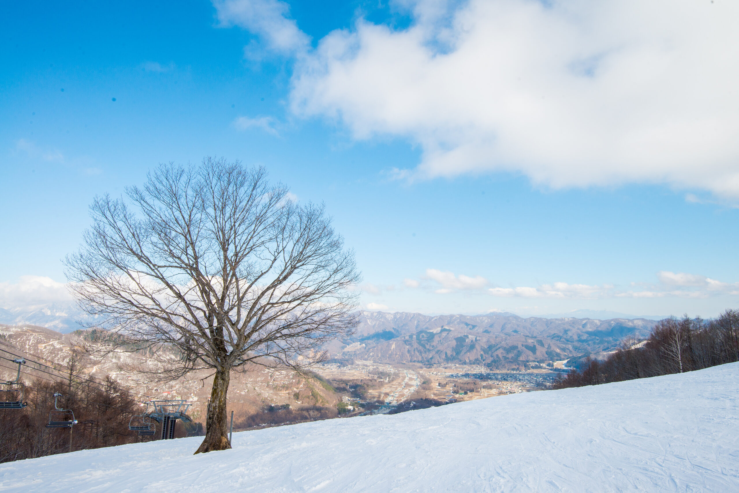 八方尾根の北尾根に架かる「北尾根クワッドリフト」。今シーズンはウィンタースポーツを行わない観光客の方もご乗車いただけます。