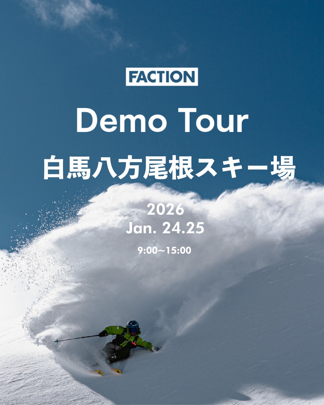 Faction Skisの試乗会を、1月24日(土)、25日(日)に八方尾根で開催します!