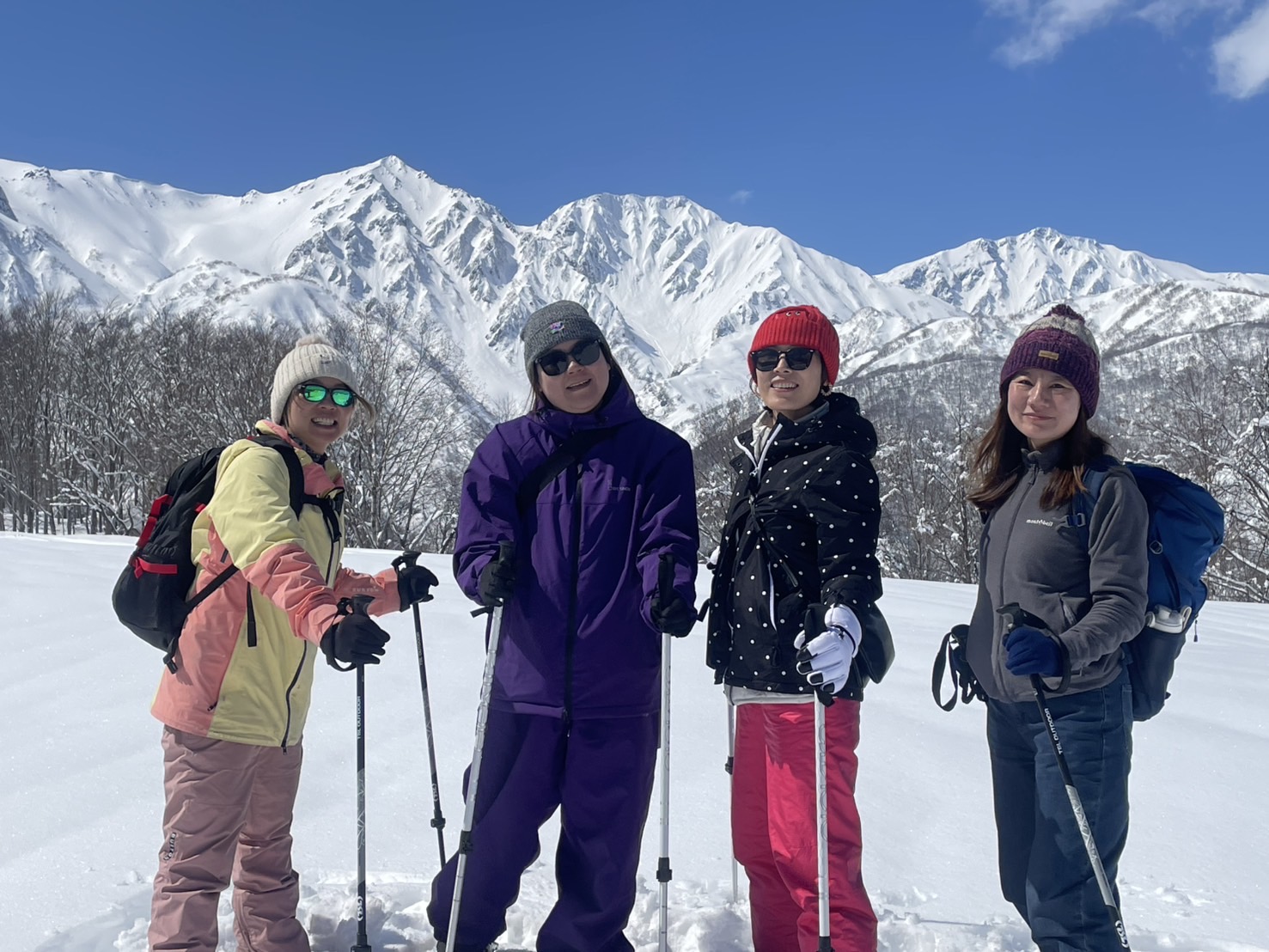 白馬三山の雄大なパノラマが目前に広がる北尾根の雪原を、初めての方でも安心して楽しんでいただけるよう