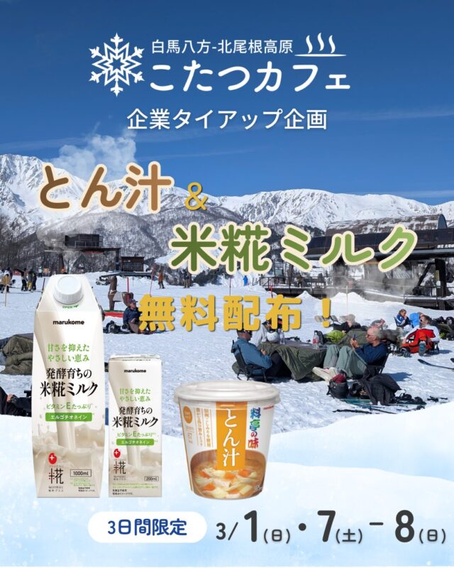 ※天候状況により「白馬八方-北尾根高原 こたつカフェ」は営業時間を短縮する可能性があります。